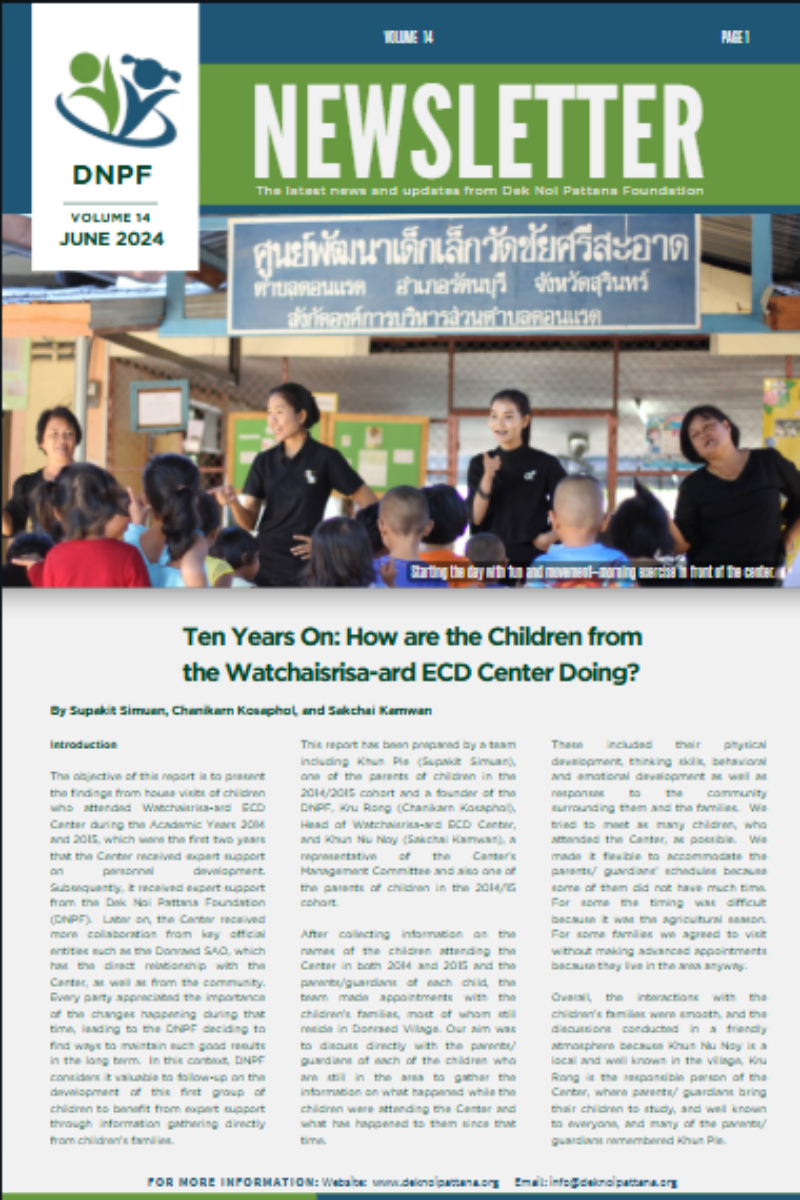 - A reflection from Khun Thanaporn Unphan, Former Dek Noi Pattana Foundation project assistant